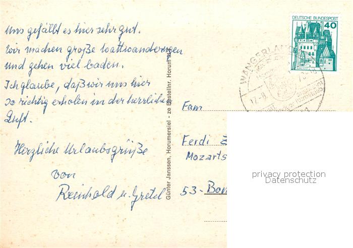 73158972 alte Postkarte Horumersiel Geeinschaftshaus Schwimmbad Veranstaltungsraeume postalisch gelaufen Erhaltung siehe scans [KathaD81] KatCode: 11110003455020