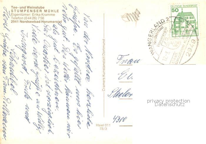 73664712 alte Postkarte Horumersiel Tee und Weinstube Stumpenser Muehle Gaststube Bar postalisch gelaufen Erhaltung siehe scans [WerneD78] KatCode: 11110003455020