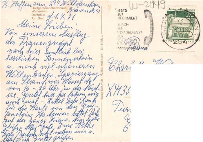 73914341 alte Postkarte Horumersiel Wangerland Dorfgemeinschaftshaus Wellenbad Dorfplatz Am Siel postalisch gelaufen Erhaltung siehe scans [FriedD77] KatCode: 11110003455020