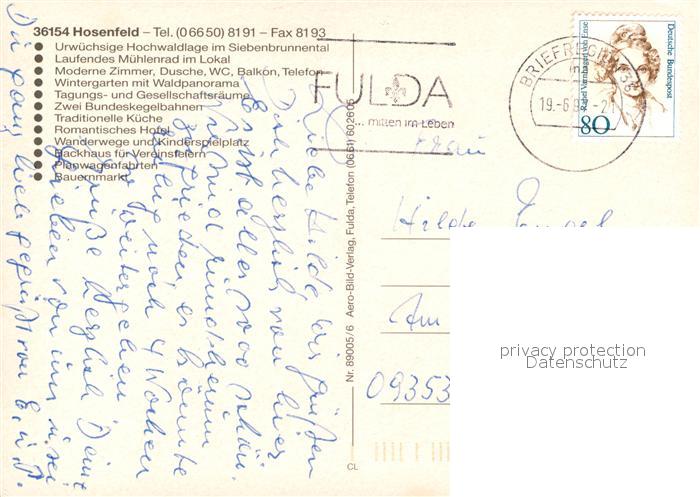 73089175 alte Postkarte Hosenfeld Gasthof Gieberzmuehle postalisch gelaufen Erhaltung siehe scans [NatalD47] KatCode: 11110006631014