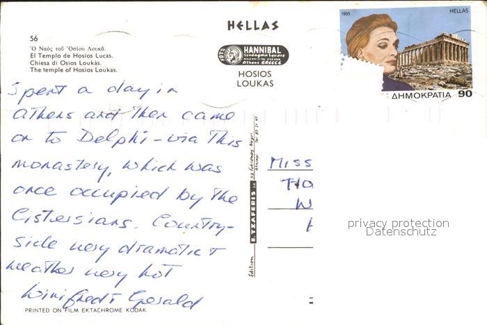 old postcard Hosios Loukas Osios Loukas Temple postalisch gelaufen Erhaltung siehe scans