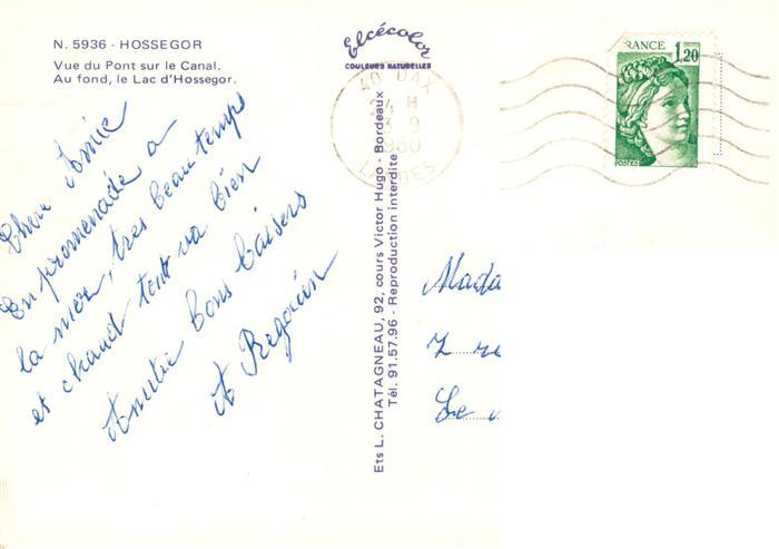 13944956 Hossegor Soorts-Hossegor 40 Landes Pont sur le canal au fond Lac d’Hossegor vue aérienne postalisch gelaufen Fliegeraufnahme Erhaltung siehe scans [FriedD77] Fliegeraufnahme carte postale Frie Katcode 11170040140304