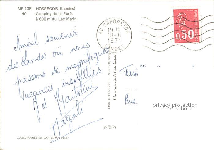 12003083 carte postale Hossegor Soorts Landes Camping de la Foret Lac Marin postalisch gelaufen Erhaltung siehe scans KatCode: 11170040140304