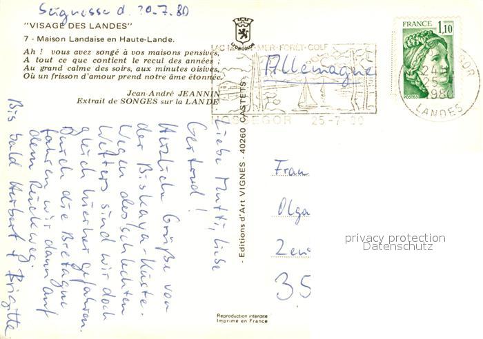 13245655 carte postale Hossegor Soorts Landes Maison Landaise en Haute Lande postalisch gelaufen Erhaltung siehe scans [KathaD81] KatCode: 11170040140304