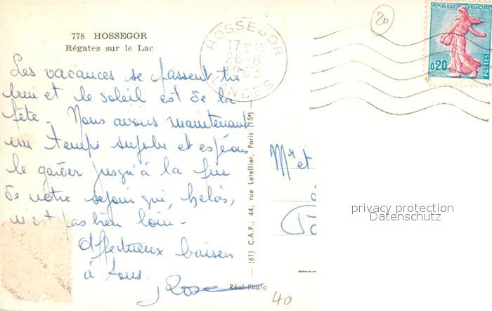 13503787 carte postale Hossegor Soorts Landes Régates sur le Lac Voiliers postalisch gelaufen Erhaltung siehe scans [FriedD77] KatCode: 11170040140304