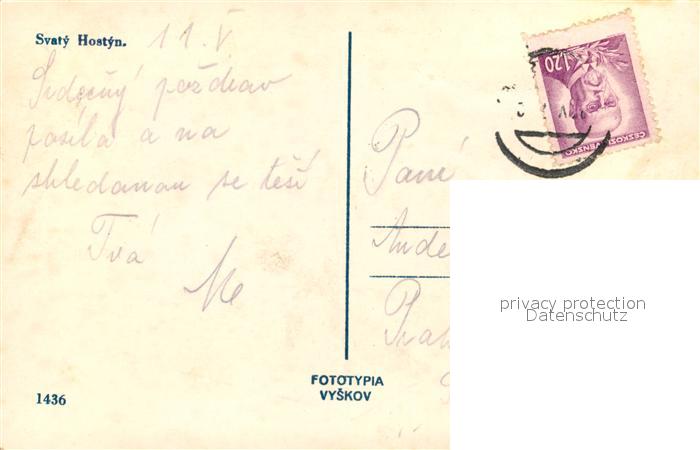 old postcard Hostyn Svaty Hostyn postalisch gelaufen Erhaltung siehe scans [WerneD78]