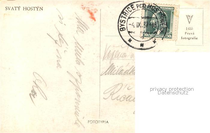 old postcard Hostyn Svaty Hostyn postalisch gelaufen Erhaltung siehe scans [WerneD78]