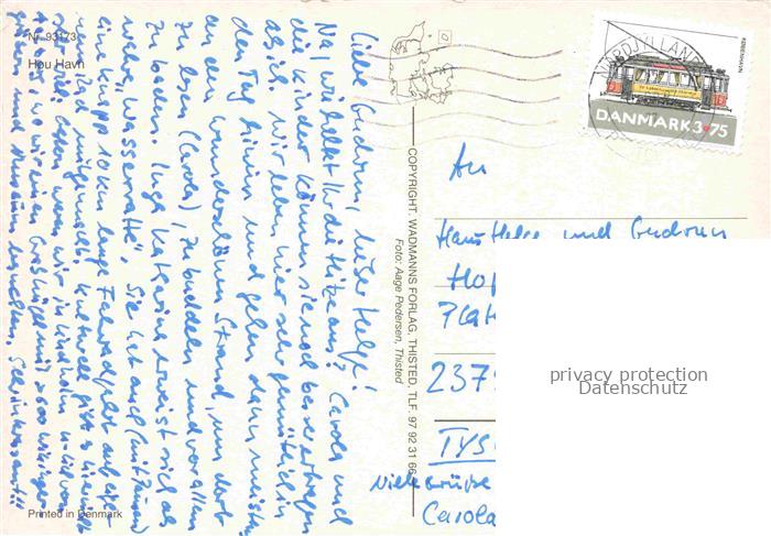 74095423 old postcard Hou Havn Thisted Vestsjalland DK Fliegeraufnahme postalisch gelaufen Erhaltung siehe scans [WerneD78] KatCode: 11100