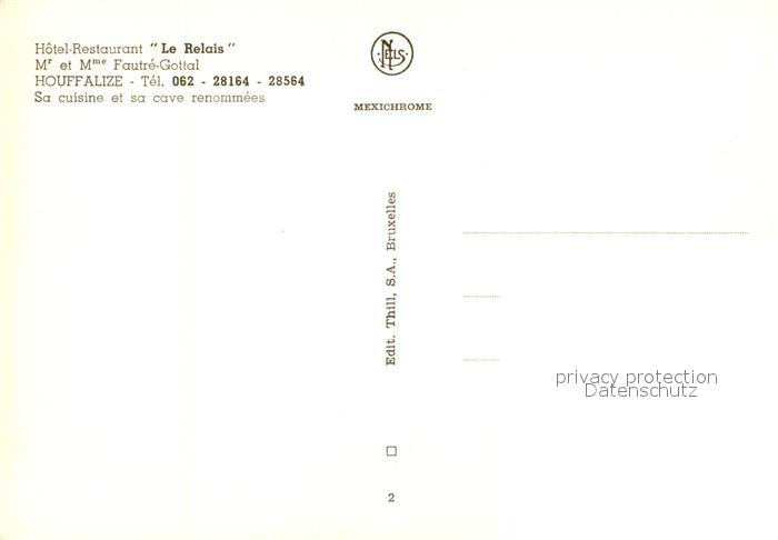 73518145 Houffalize Hotel Restaurant Le Relais postalisch nicht gelaufen Erhaltung siehe scans [KathaD81] KatCode: 11070
