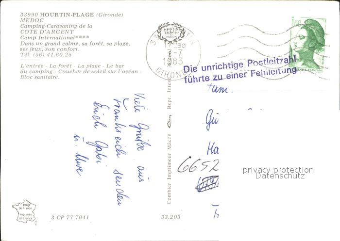 12571683 carte postale Hourtin Camping del Cote D`Argent postalisch gelaufen Erhaltung siehe scans [LiesaD40] KatCode: 11170033433203