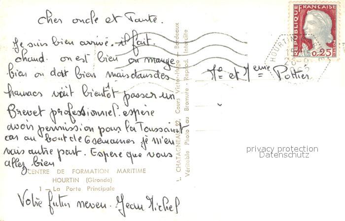 13679649 Hourtin Centre de Formation Maritime La Porte Principale postalisch gelaufen Erhaltung siehe scans [WerneD78] carte postale Wern Katcode 11170033433203