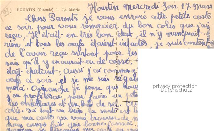 13531887 Hourtin La Mairie postalisch nicht gelaufen Erhaltung siehe scans [WerneD78] KatCode: 11170033433203
