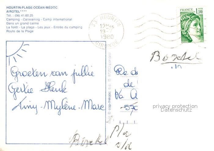 12945086 carte postale Hourtin Plage Ocean Medoc Airotel postalisch gelaufen Erhaltung siehe scans [WerneD78] KatCode: 11170033433203