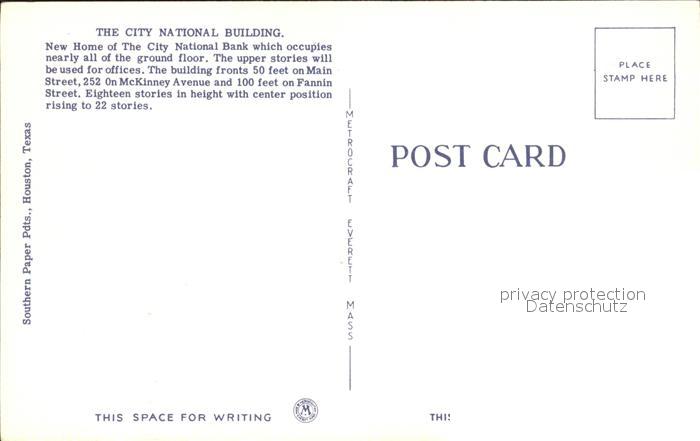 72147138 Houston Texas USA City National Bank postalisch nicht gelaufen Erhaltung siehe scans KatCode: 14140460000000