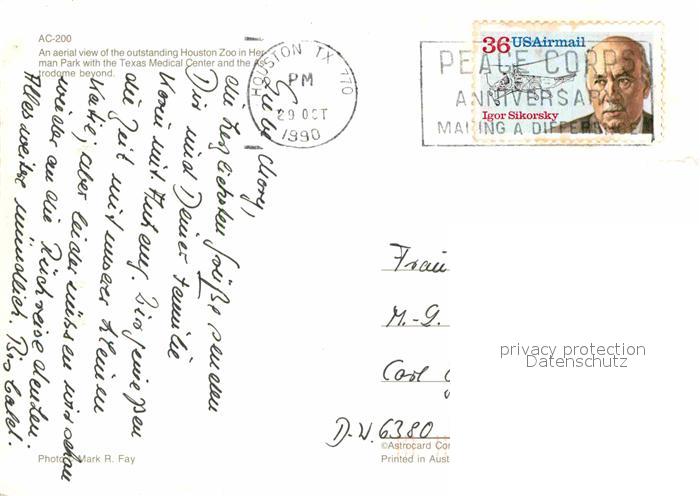 72752341 old postcard Houston Texas USA Fliegeraufnahme postalisch gelaufen Erhaltung siehe scans [AndreD76] KatCode: 14140460000000