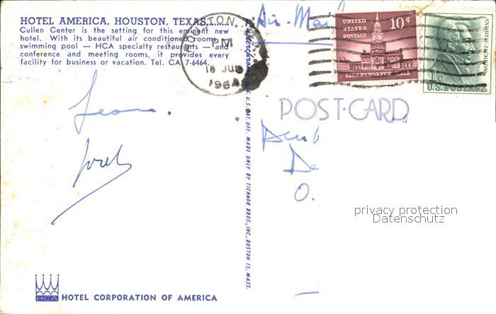 72278234 old postcard Houston Texas USA Hotel America postalisch gelaufen Erhaltung siehe scans KatCode: 14140460000000