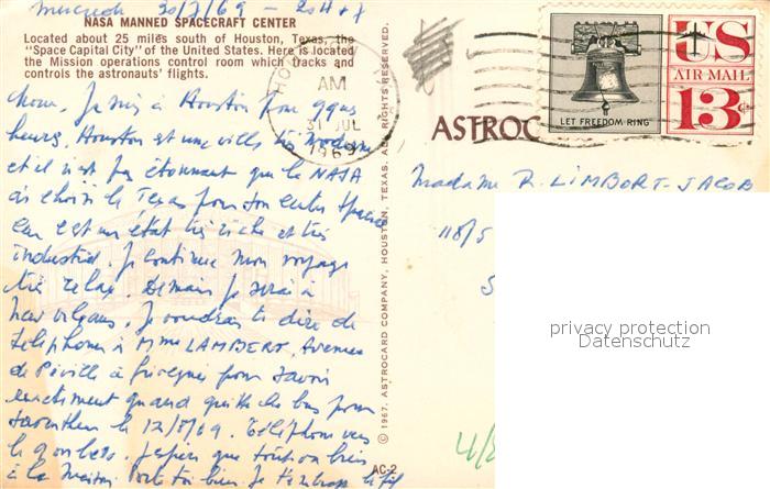 73062925 old postcard Houston Texas USA NASA Manned Spacecraft Center Airview postalisch gelaufen Erhaltung siehe scans [FriedD77] KatCode: 14140460000000