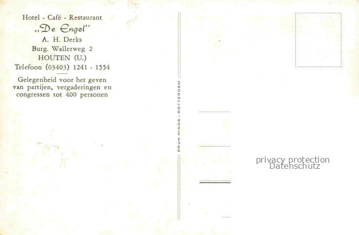 74085030 Houten Hotel De Engel Restaurant postalisch nicht gelaufen Erhaltung siehe scans [WerneD78] KatCode: 11370
