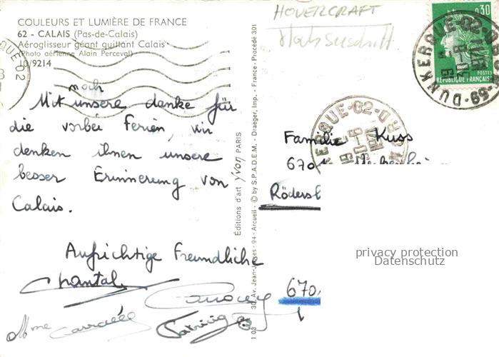 74051982 alte Postkarte Hovercraft Luftkissenboot Schiffe Ships Navires– Calais Couleurs et Lumiere de France postalisch gelaufen Erhaltung siehe scans [IrynaD87] KatCode: 22480000000800