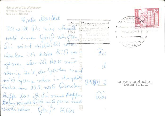 72034616 alte Postkarte Hoyerswerda Centrum Warenhaus postalisch gelaufen Erhaltung siehe scans KatCode: 11110014264000