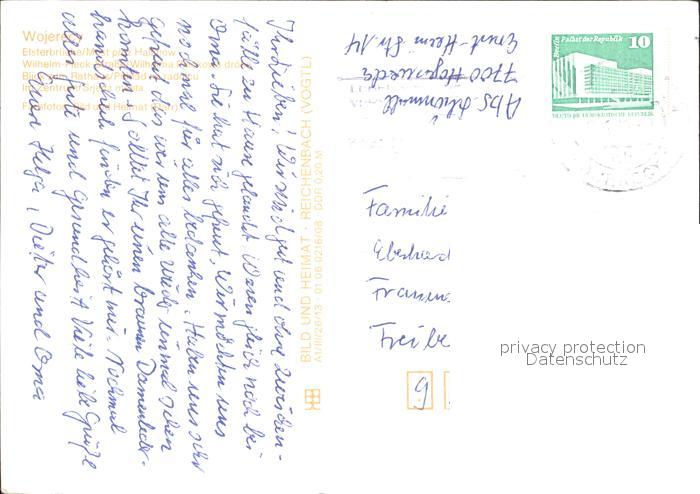 72332148 alte Postkarte Hoyerswerda Elsterbruecke Wilhelm Pieck Strasse Wohnblock Rathaus Zentrum postalisch gelaufen Erhaltung siehe scans KatCode: 11110014264000