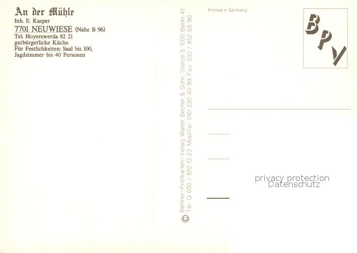 73062779 Hoyerswerda Neuwiese Restaurant An der Muehle postalisch nicht gelaufen Erhaltung siehe scans [KathaD81] KatCode: 11110014264000