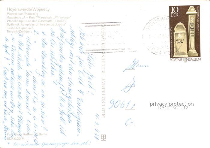 72332151 alte Postkarte Hoyerswerda Planetarium Magistrale Wohnkomplex Gaststaette Freibad Tierpark postalisch gelaufen Erhaltung siehe scans KatCode: 11110014264000