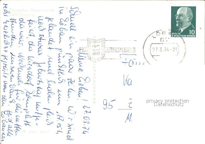72117529 alte Postkarte Hoyerswerda Tiergarten Cafe Terrasse postalisch gelaufen Erhaltung siehe scans KatCode: 11110014264000