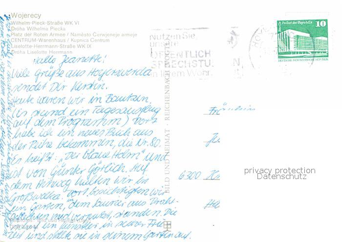 72627774 alte Postkarte Hoyerswerda Wilh Pieck Str Platz der Roten Armee Centrum Warenhaus Liselotte Herrmann Str postalisch gelaufen Erhaltung siehe scans [WerneD78] KatCode: 11110014264000
