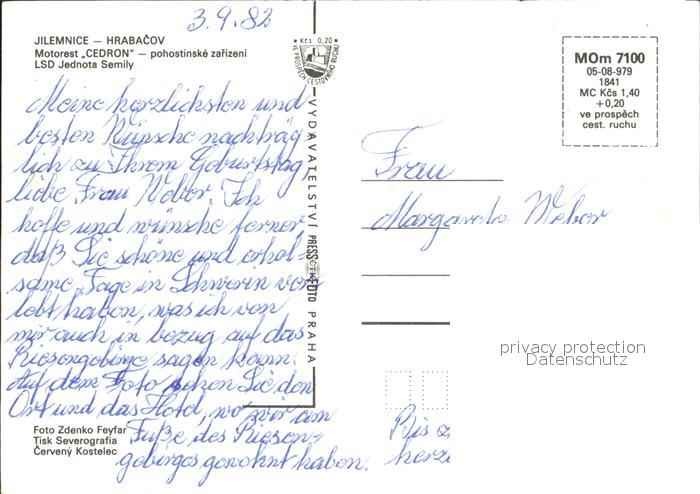 Hrabacov Motorest Cedron pohostinske zalizeni LSD Jednota Semily postalisch nicht gelaufen Erhaltung siehe scans
