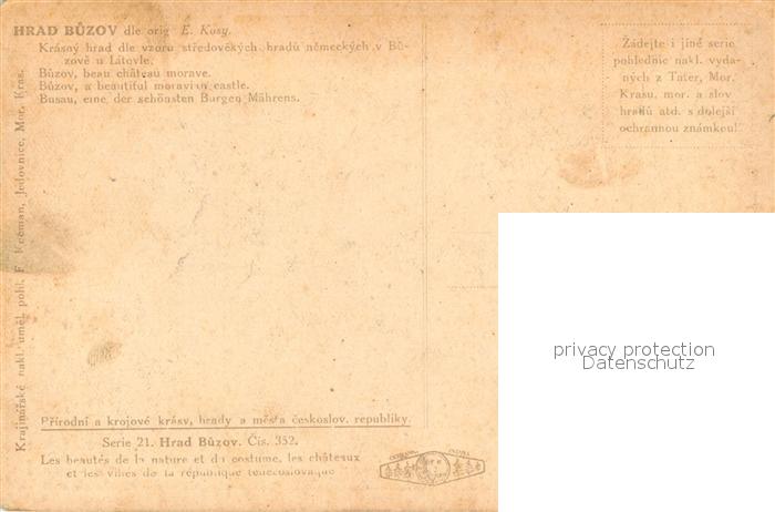 Hrad Buzov Schloss postalisch nicht gelaufen Erhaltung siehe scans [WerneD78]