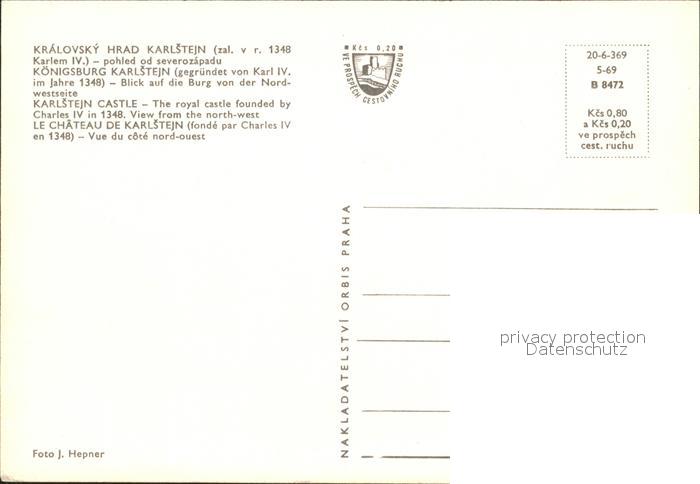 Hrad Karlstejn postalisch nicht gelaufen Erhaltung siehe scans
