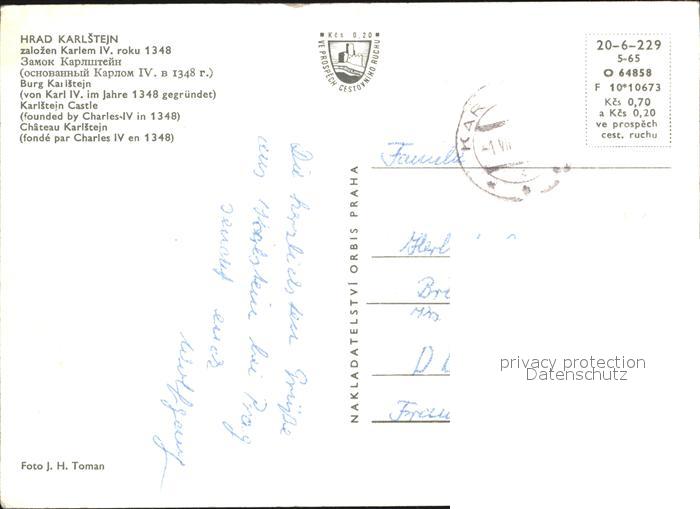 old postcard Hrad Karlstejn postalisch gelaufen Erhaltung siehe scans