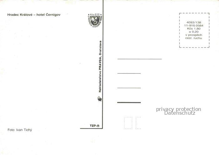 74036426 old postcard HRADEC KRALOVE Koeniggraetz CZ Hotel Cernigov Restaurant Swimming Pool postalisch gelaufen Erhaltung siehe scans [FriedD77] KatCode: 11520