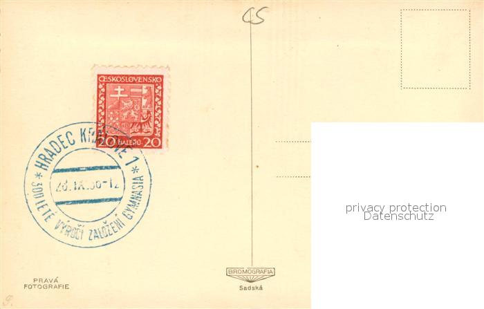 13748740 old postcard Hradec Kralove Koeniggraetz Rasinovo gymnasium postalisch gelaufen Erhaltung siehe scans [WerneD78] KatCode: 11520