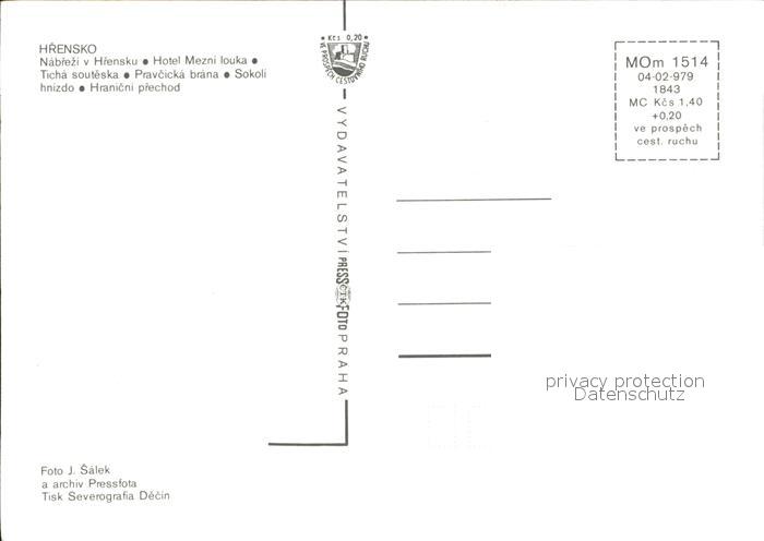 Hrensko Elbe Anleger Hotel Restaurant Wasserfall Gebirgspanorama Grenze postalisch nicht gelaufen Erhaltung siehe scans