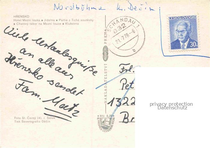 74156409 old postcard Hrensko Herrnskretschen Boehmen CZ Hotel-Mezni-Louka Jidelna Tiché-soutěsky Chatovy-tabor Campingplatz Klubovna Felsen Restaurant postalisch gelaufen Erhaltung siehe scans [Karloger] KatCode: 11520