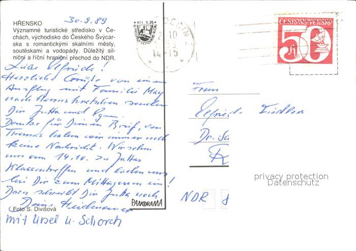 old postcard Hrensko Sandsteinfelsen postalisch gelaufen Erhaltung siehe scans