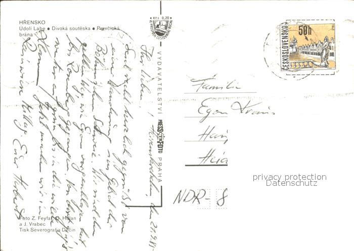 old postcard Hrensko Udoli Labe Bootstour Felsen postalisch gelaufen Erhaltung siehe scans