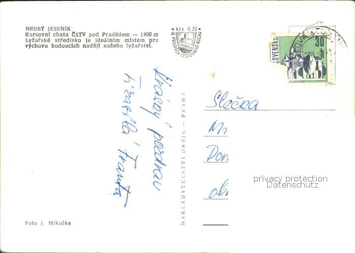old postcard Hruby Jesenik Kursovni chata CSTV pod Pradedem Wintersportplatz postalisch gelaufen Erhaltung siehe scans