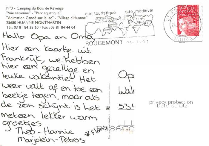 12680664 carte postale Huanne-Montmartin Vue aerienne Camping du Bois de Reveuge Parc aquatique Village d Huanne postalisch gelaufen Erhaltung siehe scans [WerneD78] KatCode: 11170025125310