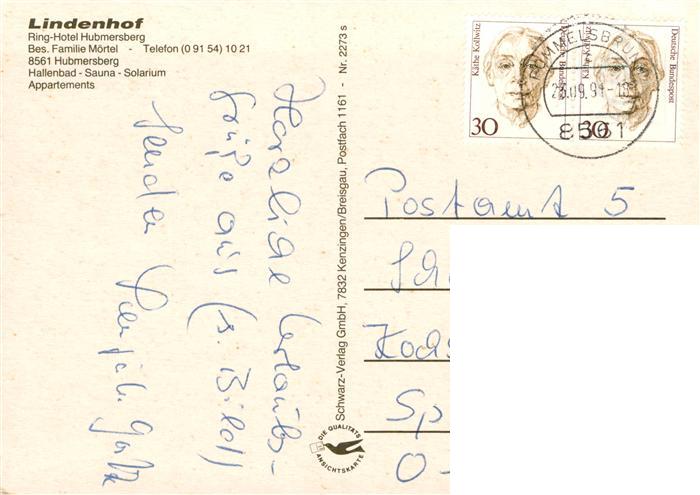 73932660 Hubmersberg Hersbruck Lindenhof Ring Hotel Gastraeume postalisch gelaufen Erhaltung siehe scans [WerneD78] alte Postkarte Wern Katcode 11110009574132