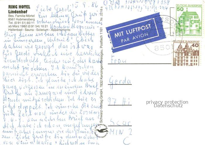 74034377 alte Postkarte Hubmersberg Ring Hotel Lindenhof Landschaftspanorama Felsen postalisch gelaufen Erhaltung siehe scans [FriedD77] KatCode: 11110009574147