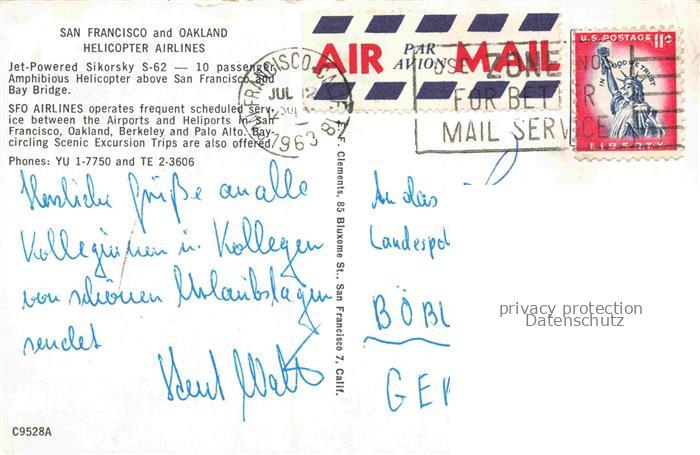 74137039 alte Postkarte Hubschrauber Helicopter San Francisco Oakland New York USA postalisch gelaufen Erhaltung siehe scans [SanaeD93] KatCode: 22120000001100