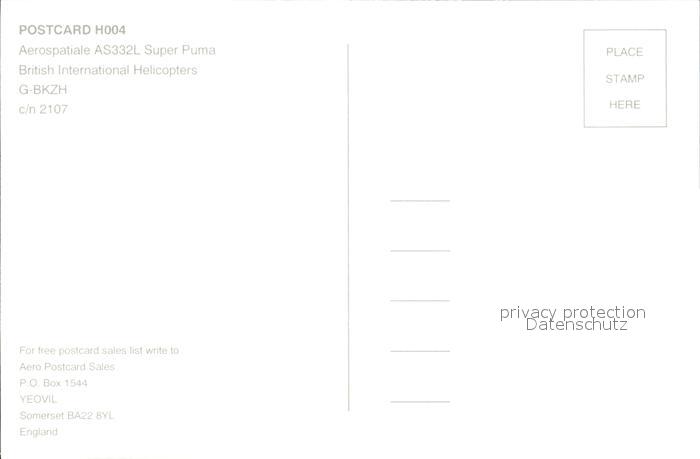 Hubschrauber Helikopter British International Helicopters Aerospatiale AS332L Super Puma postalisch nicht gelaufen Erhaltung siehe scans