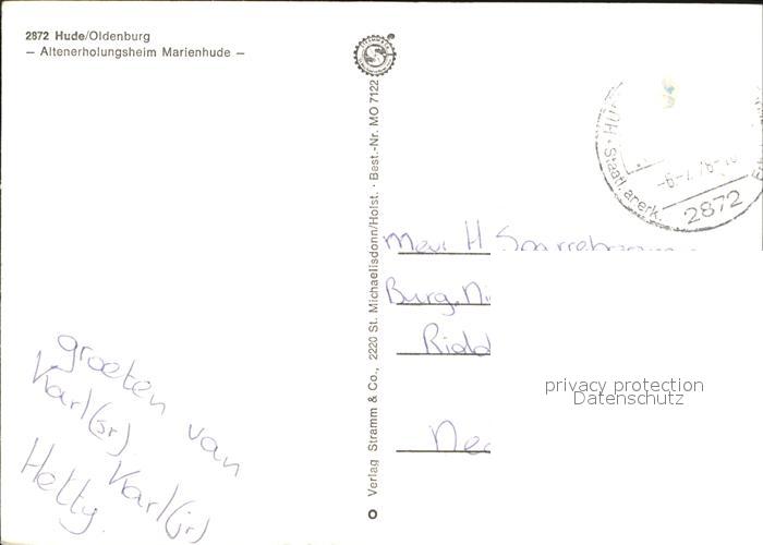 72526682 alte Postkarte Hude Oldenburg Altenerholungsheim Marienhude postalisch gelaufen Erhaltung siehe scans KatCode: 11110003458010
