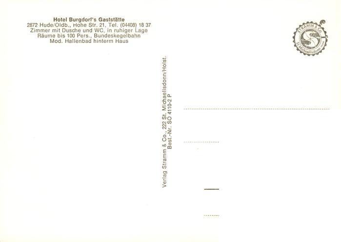 73905794 Hude Oldenburg Hotel Burgdorfs Gaststaette Theke postalisch nicht gelaufen Erhaltung siehe scans [FriedD77] KatCode: 11110003458010