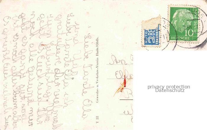 74150879 alte Postkarte Hude Oldenburg Niedersachsen Parkanlage Teich Eiche Baumgruppe Laubwald Spazierweg Wasser postalisch gelaufen Erhaltung siehe scans [Karloger] KatCode: 11110003458010