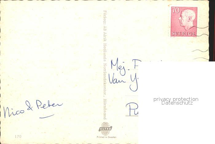 old postcard Hudiksvall Posthuset Parken Lillfjaerden Kanalidyll postalisch gelaufen Erhaltung siehe scans