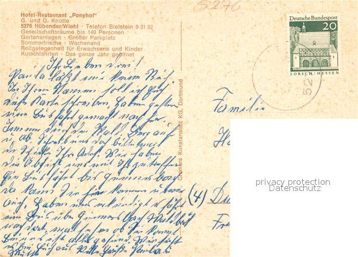 73723603 alte Postkarte Huebender Gaststaette Pension Ponyhof Pferdekutsche Ausritte postalisch gelaufen Erhaltung siehe scans [FriedD77] KatCode: 11110005374048